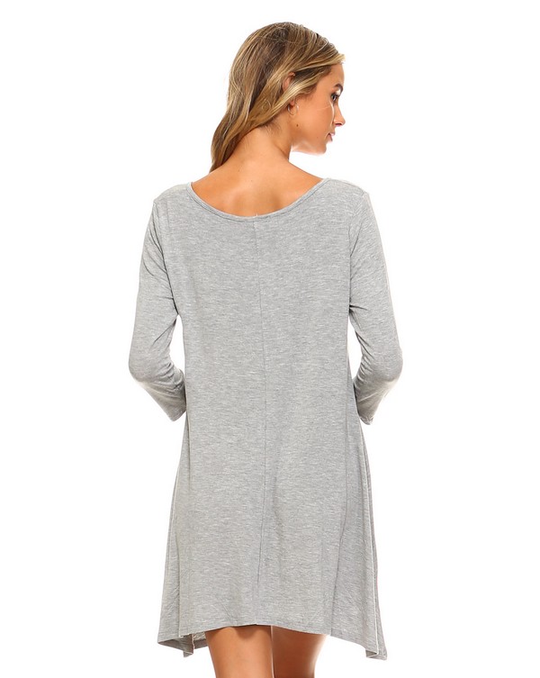 Solid jersey knit a-line dress perfect for a chill warm weather day, fabric is very stretchy for a comfortable look.