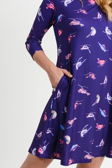 Tweet tweet to the party in this whimsical little number! Featuring a novelty bird print and a-line silhouette.