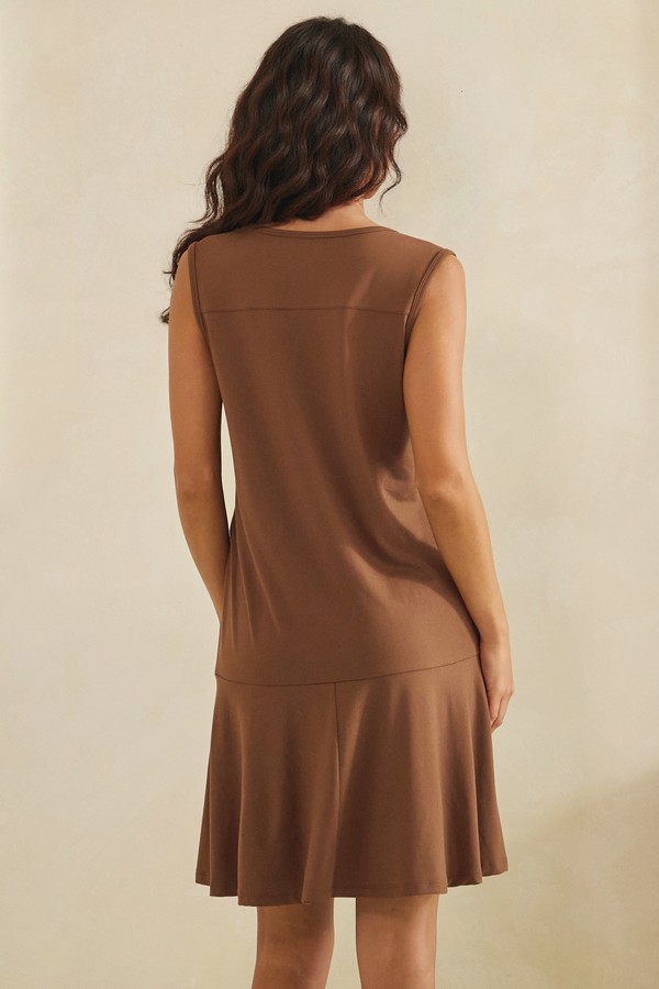 Chic and understated, this sleeveless Peach Skin dress features a softly structured silhouette that moves with ease. Designed with a subtle split neckline and a relaxed bodice, it falls into a gently flounced hem for a flattering, feminine finish. The lightweight, breathable fabric offers all-day comfort, making it perfect for warm-weather outings, casual gatherings, or elevated everyday wear. Pair it with sandals for a laid-back look or dress it up with heels and statement accessories for refined simplicity.