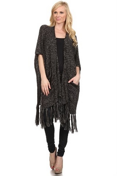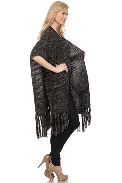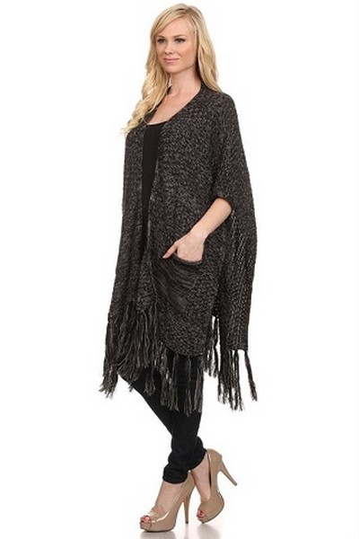 Over sized cardigan with fringe. Size: One size fits most 6 pcs per pack, all sizes in pack are One size fits most.