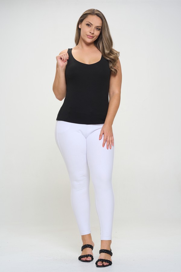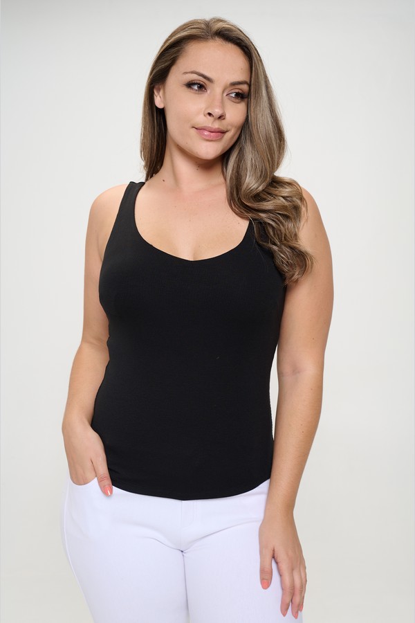 This tank top seamlessly blends comfort and style with its modern design, featuring a scoop neck, wide shoulder straps, and a chic scoop back. The built -in bra, complete with removable cups, ensures optimal support and versatility, while the ribbed material adds a touch of texture and sophistication. Perfect for layering or wearing on its own, this top is a must-have for any fashion-forward wardrobe. Let this fitted top emphasize your curves!
