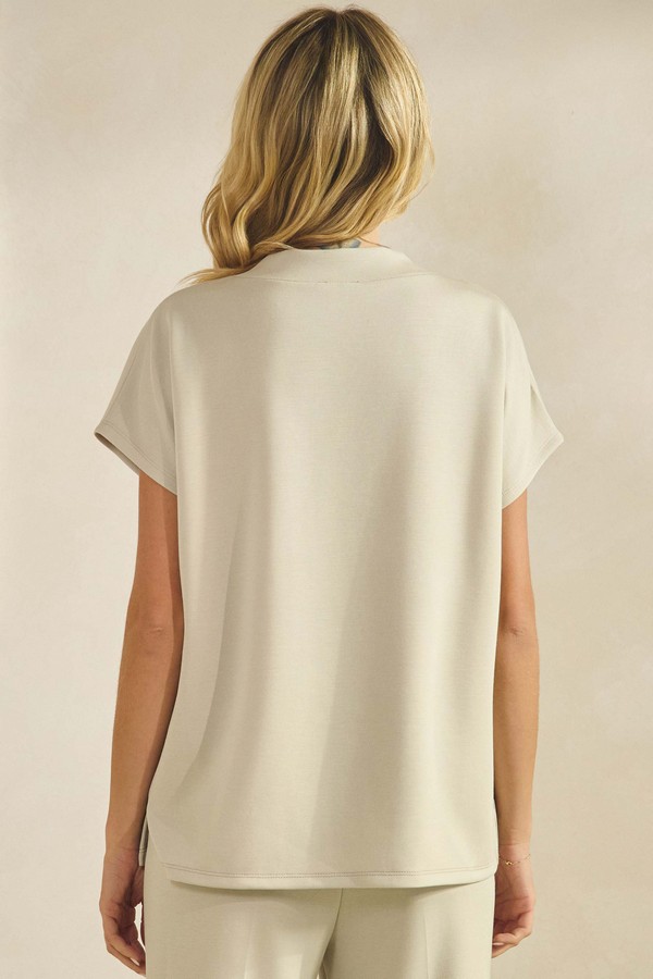 Designed for ease and elegance, this relaxed-fit V-neck top blends softness with structure. Its draped silhouette flows past the hips, offering a flattering, elongated line that moves effortlessly from lounge to street. Short sleeves and a fluid cut create a breathable, unfussy profile, perfect for layering or wearing solo. Whether styled with leggings, denim, or cozy bottoms, it’s a versatile staple that elevates casual dressing with understated polish.