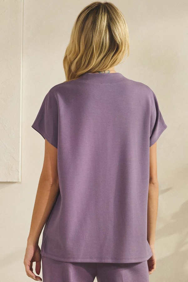 Designed for ease and elegance, this relaxed-fit V-neck top blends softness with structure. Its draped silhouette flows past the hips, offering a flattering, elongated line that moves effortlessly from lounge to street. Short sleeves and a fluid cut create a breathable, unfussy profile, perfect for layering or wearing solo. Whether styled with leggings, denim, or cozy bottoms, it’s a versatile staple that elevates casual dressing with understated polish.