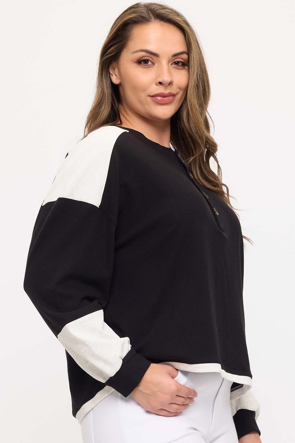 Women's Two Tone Ribbed Loose Fit Top with Buttons