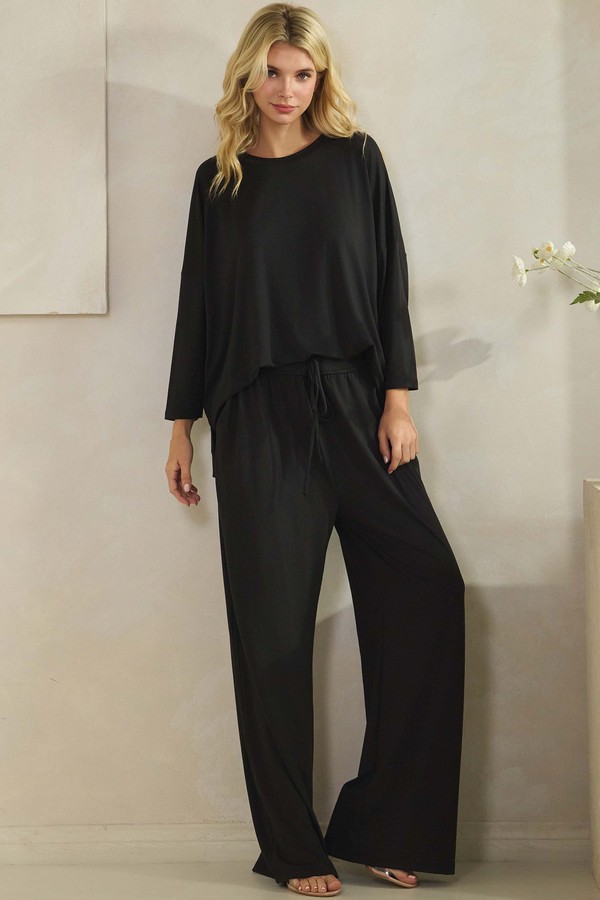 Effortless style meets all-day comfort in this everyday essential. Designed with a relaxed fit, slouchy long sleeves, and a round neckline. The drop-shoulder silhouette adds a modern, laid-back edge. Perfect to style with your favorite lounge pants, joggers, or denim, everything from lounging to casual streetwear.