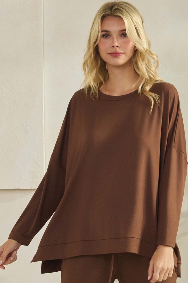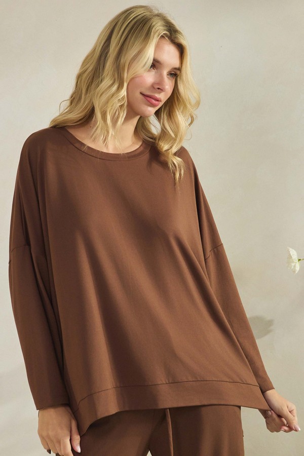 Effortless style meets all-day comfort in this everyday essential. Designed with a relaxed fit, slouchy long sleeves, and a round neckline. The drop-shoulder silhouette adds a modern, laid-back edge. Perfect to style with your favorite lounge pants, joggers, or denim, everything from lounging to casual streetwear.