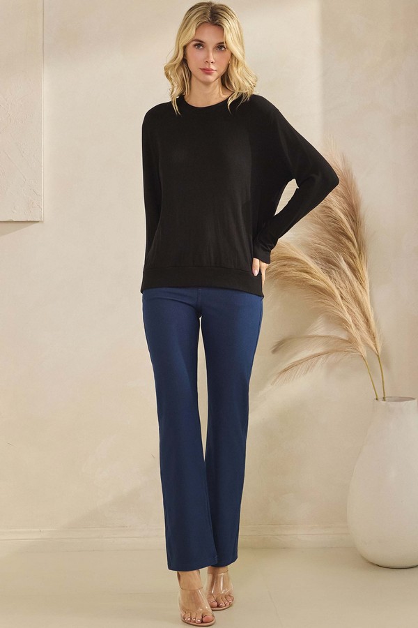 Sleek, simple, and irresistibly soft, this Pure Comfort Top will quickly become your new wardrobe essential. Made with super-soft and lightweight viscose that drapes beautifully. The wide banded hem allows for a loose or tucked blouson silhouette, offering versatile styling with ease. Wear it solo for a clean look or layer it under jackets and cardigans for effortless style year-round.