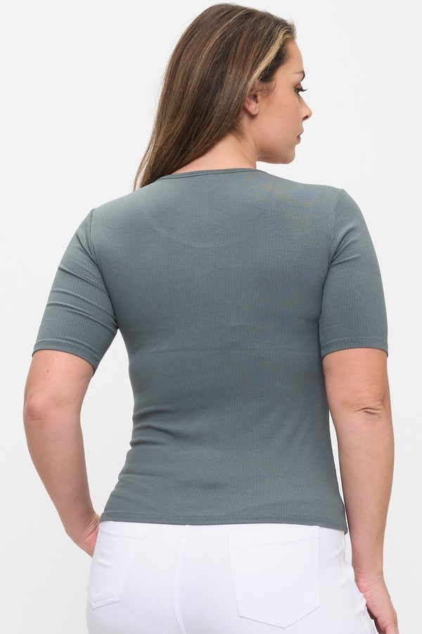 A minimalist essential with subtle texture and sculpted ease. This fitted scoop-neck top features a fine ribbed knit that hugs the body with soft stretch, Mid sleeves that balance coverage and breathability, and a clean neckline that flatters without fuss. Designed for layering or solo wear, it’s your go-to for elevated basics with a modern edge.