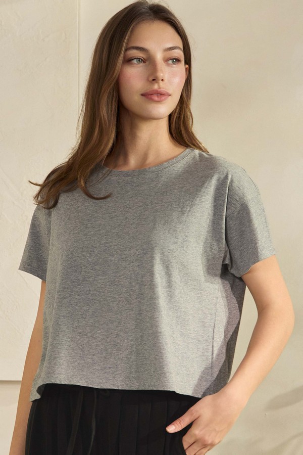 WHOLESALE Soft and Relaxed Cotton Crewneck cropped Tee