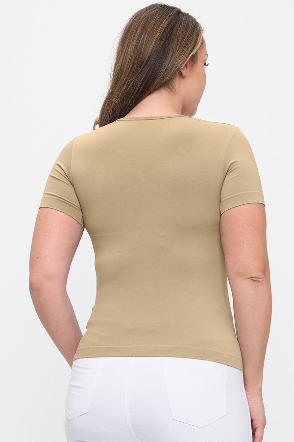Designed for effortless comfort and a flattering fit, this seamless short sleeve top is a versatile essential for any wardrobe. The smooth, stretch fabric contours gently to the body, creating a sleek silhouette that’s perfect for layering or wearing on its own. Featuring a classic scoop neckline and clean, minimal design, this top pairs easily with jeans, leggings, or trousers for a polished everyday look.