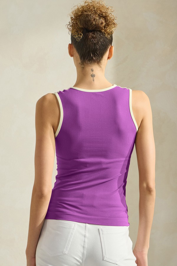 Elevate your wardrobe with this Contrast Two-Tone U or Scoop Neck Sleeveless Tank, designed for a modern, stylish look. Featuring a flattering U-neck or scoop neck, this tank offers a soft, curved neckline that enhances the overall silhouette. The bold contrast color binding along the neck and armholes adds a striking visual detail, making this piece a standout in any casual outfit. Crafted with a sleek, sleeveless design, it's perfect for layering or wearing solo on warmer days.