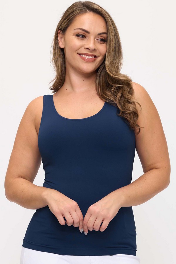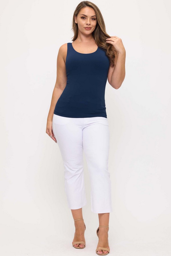 Effortless versatility meets everyday comfort in this reversible tank. Designed with a built-in bra for light support, it offers a sleek, smooth fit that flatters from every angle. Wear it with the scoop neck in front for a classic look, or flip it for a deeper neckline—two styles in one. Crafted from soft, stretchy fabric, this tank is perfect for layering under jackets or wearing solo with jeans, shorts, or skirts. A timeless staple you’ll reach for again and again.