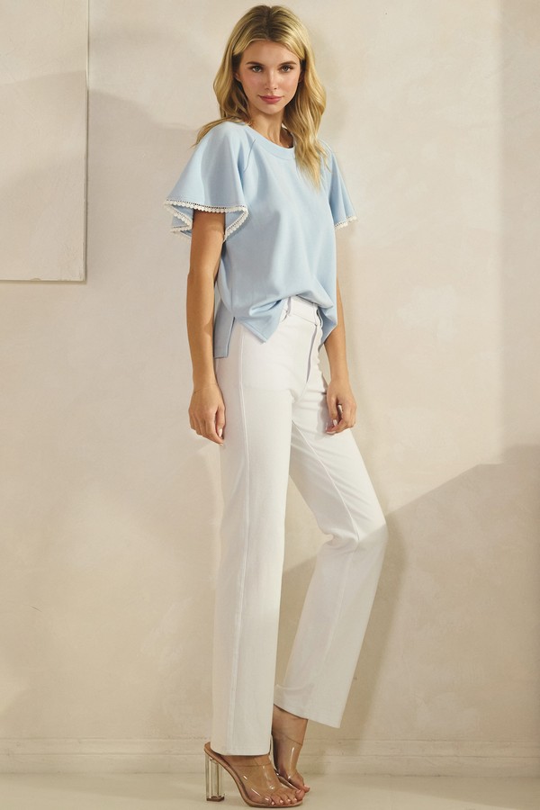 Thin Modal Scuba Scalloped Edge Trim Short Sleeve Top