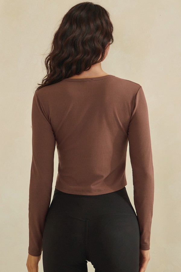 Detail Description: Sleek, minimal, and effortlessly flattering, this long sleeve cropped top is designed to elevate everyday styling. Crafted from soft viscose ribbed fabric, it offers a smooth stretch feel that comfortably contours to the body while maintaining a breathable, lightweight finish. The classic round neckline and fitted silhouette create a clean, modern look that pairs perfectly with high-waisted bottoms. Ideal for layering or wearing on its own, this versatile piece transitions seamlessly from casual days to elevated everyday outfits.