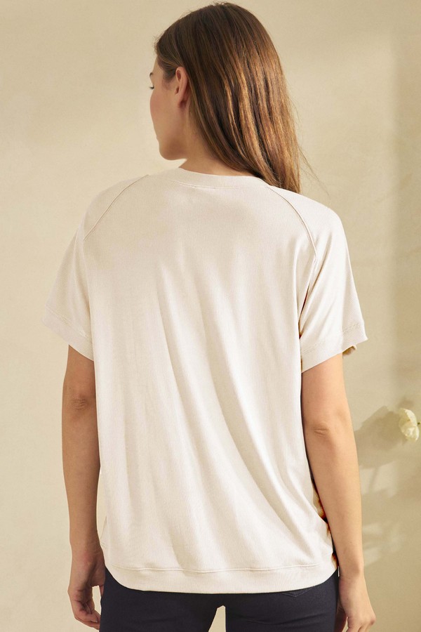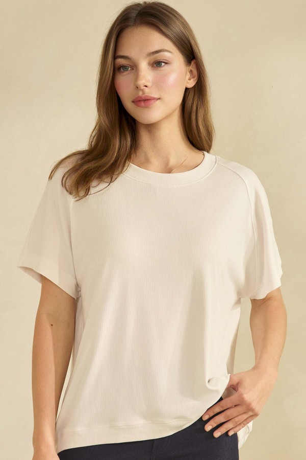 A minimalist top with subtle structure and a relaxed drop through the body. The clean crew neckline and short sleeves offer a timeless silhouette, while the soft drape adds movement and ease. Designed to pair effortlessly with tailored or casual pieces, it’s a quiet essential with architectural poise.